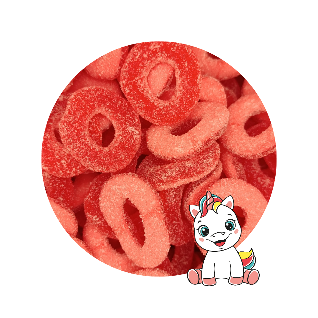 Craquez pour la douceur fruitée des bonbons anneaux fraise !