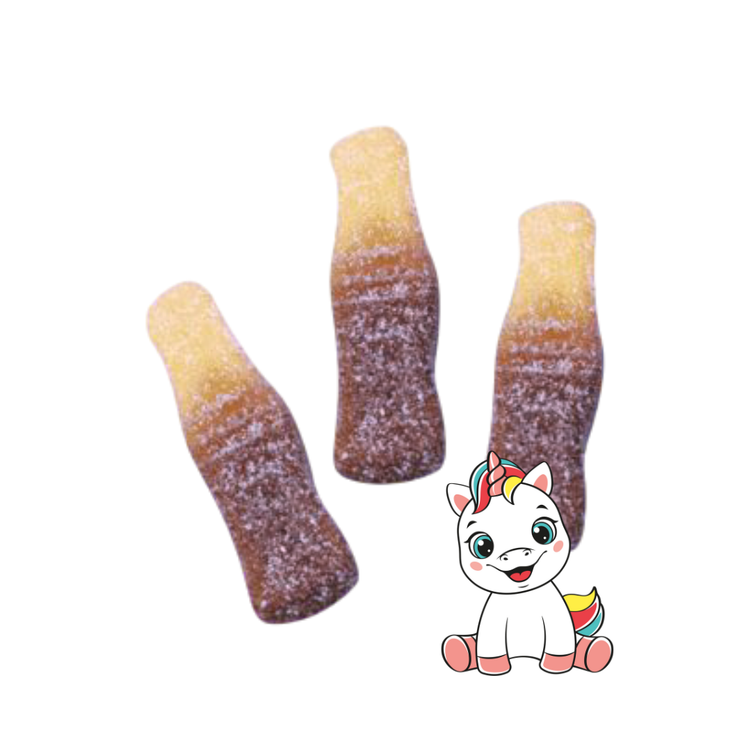 Les Bouteilles de cola géante sucré au bon gout de cola, aussi grande que la taille d'une main à peu près, elles sont sans gluten.