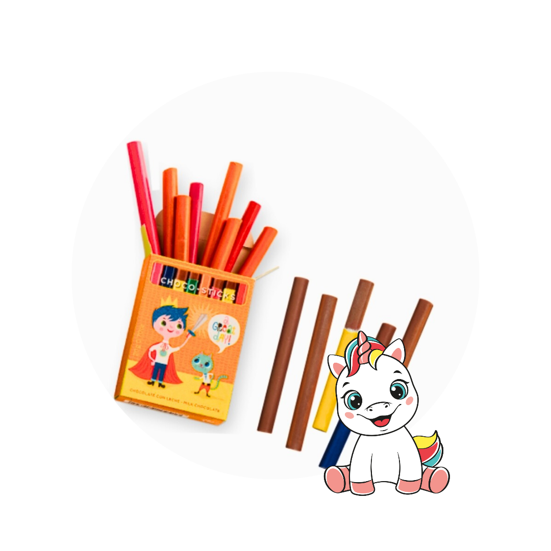 Choco sticks crayon au chocolat, de délicieux bâtonnets en chocolat au lait (minimum 30%), sous papier protecteur, souvenir de notre enfance.