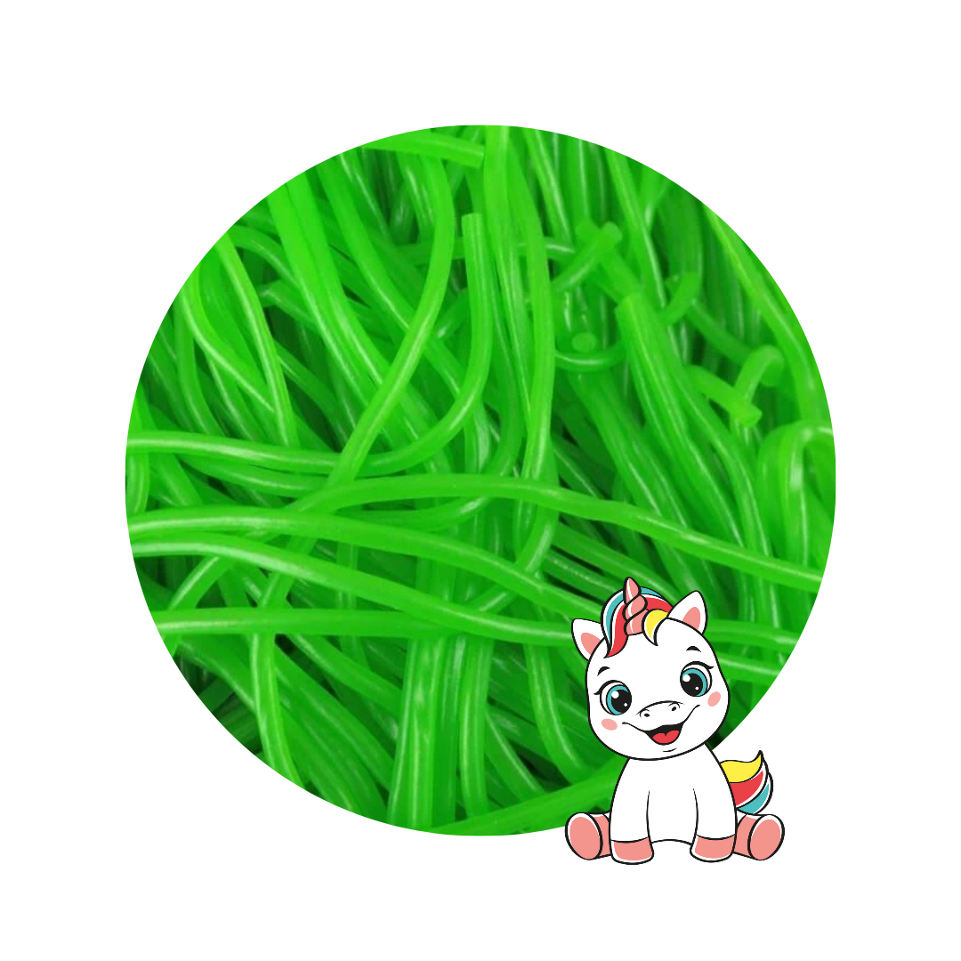 Lassos lisse pomme est un bonbon qui ressemble à un fil à scoubidou au gout de pomme de quoi amuser les enfants avec ces grand lassos.