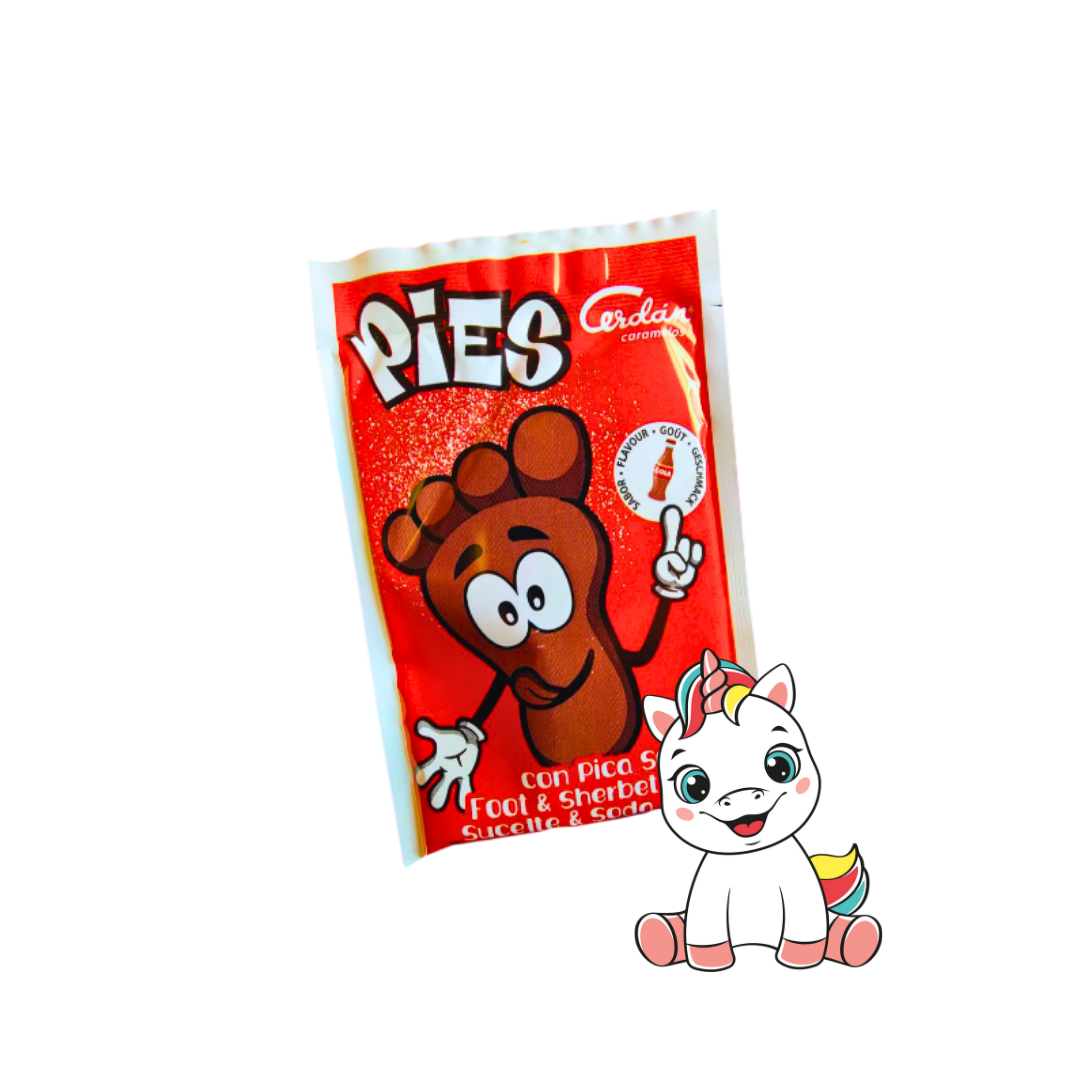 Un sachet Pied Poudre Cola comprenant une sucette goût Cola en forme de pied à tremper dans de la poudre effervescente acidulée de quoi amuser les enfants.