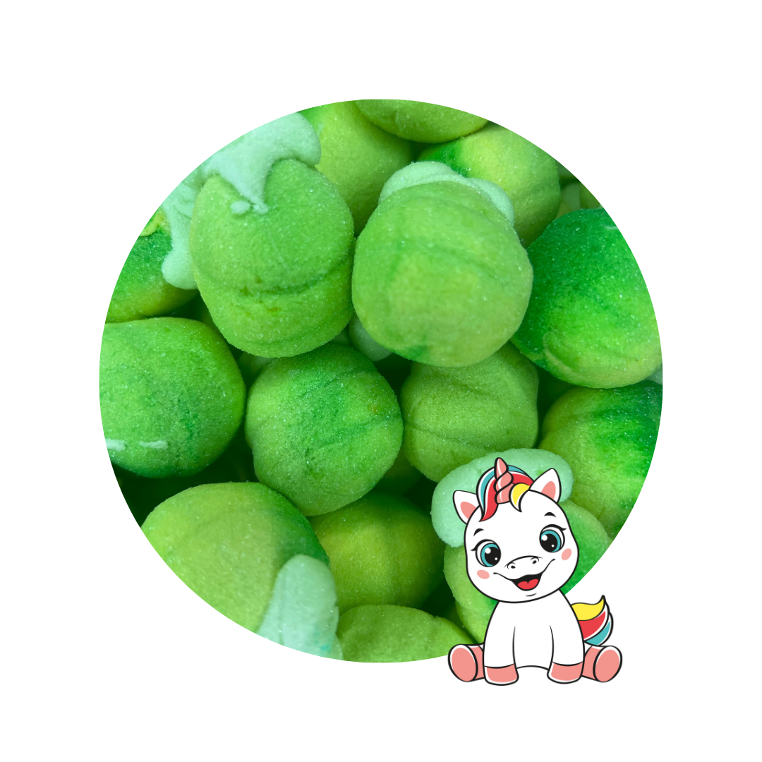 Découvrez les Guimauves en forme de pomme fourrée à la Gelée , une friandise irrésistible, confectionnée à partir de guimauve moelleuse et légère, de couleur verte, parfumée à la pomme, fourrée d'une gelée de pomme!