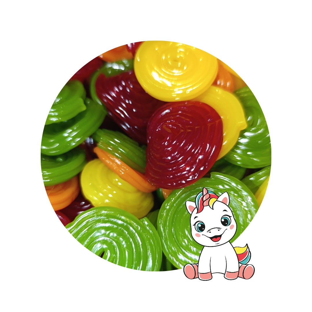 Après les Rotella réglisse voici les Rotella fruits aux qui ce mangent tout seul, à dérouler ou pas. Ce sont des bonbons enroulés comme les fils scoubidou .