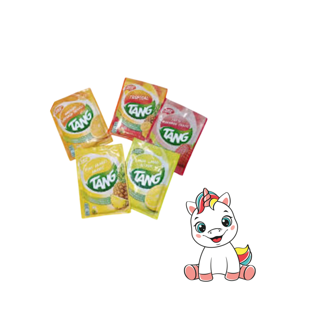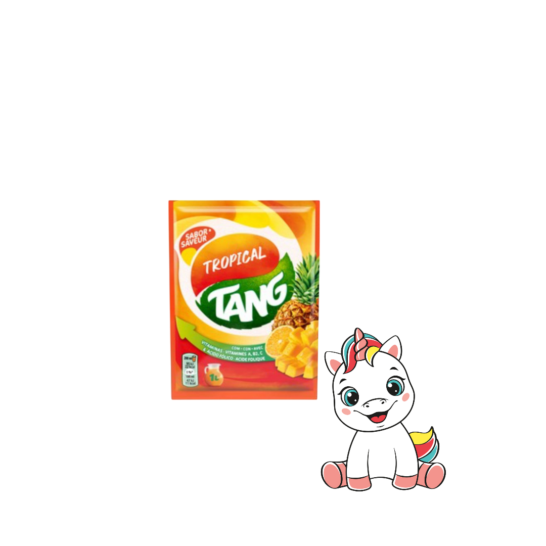 Tang la boisson de notre enfance qui ce compose d'un petit sachet de 30g de poudre à diluer dans 1 Litre d'eau ce qui vous fait votre boisson!