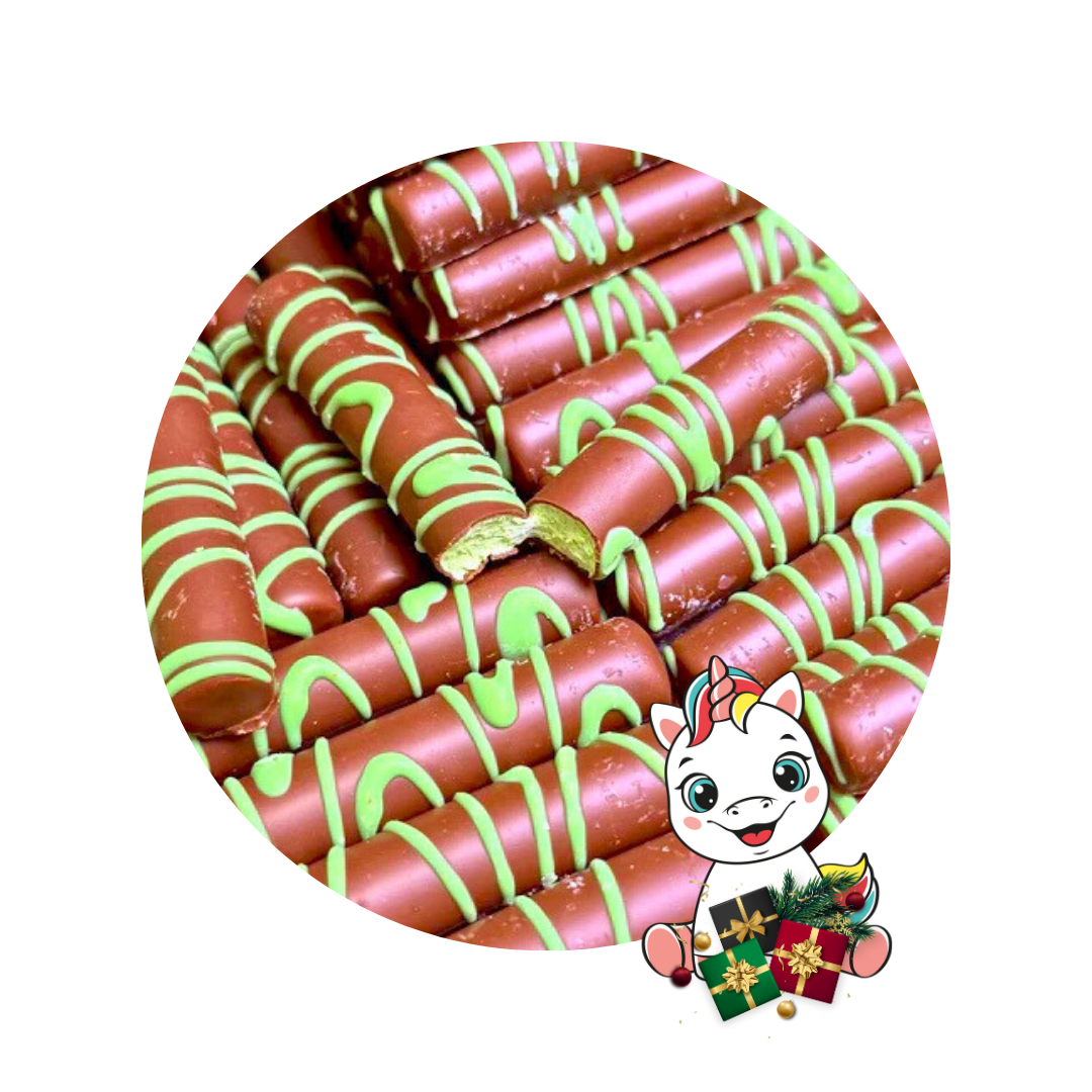 Ces délicieuses guimauves moelleuses sont enrobées d’un chocolat au lait fondant et fourrées d’une crème à la pistache au goût raffiné. Leur texture à la fois tendre et croquante offre une expérience unique, entre douceur et intensité chocolatée.